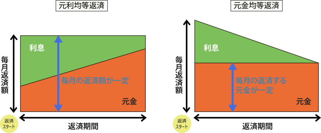 返済方式は「元利均等返済」と「元金均等返済」の2種類です。
