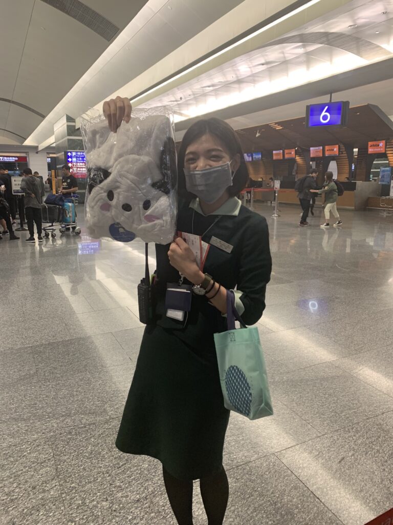 そのとき出国取り消し手続きを嫌々ながらに手伝ってくれた航空会社の添乗員さんに、お詫びの印として着ぐるみをプレゼントしました。