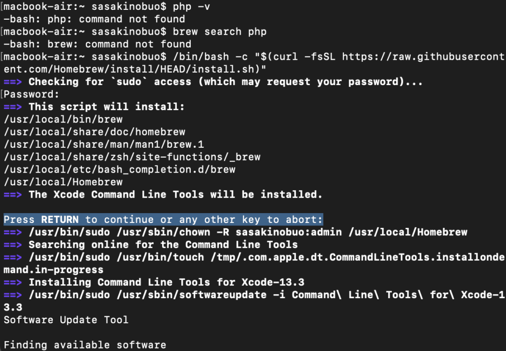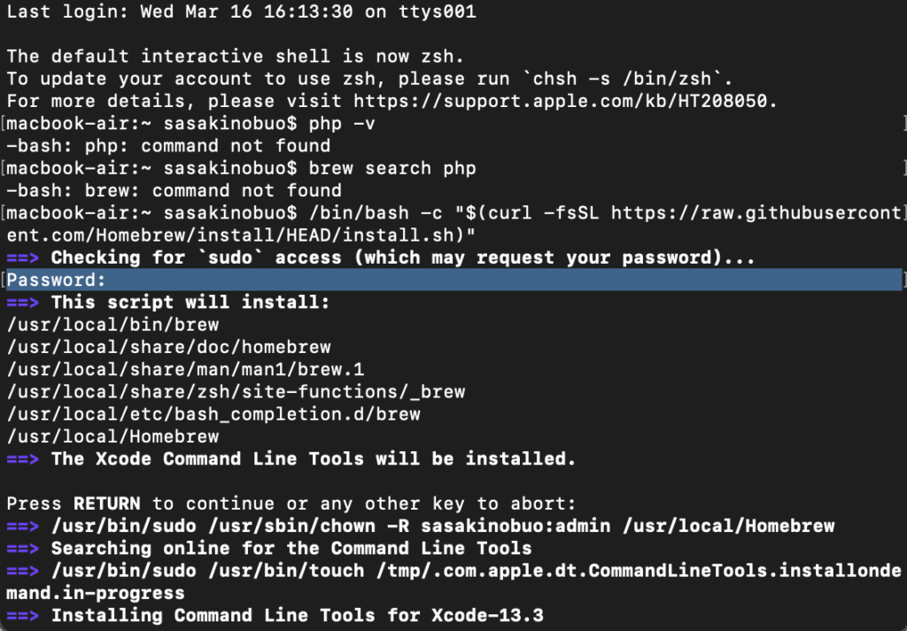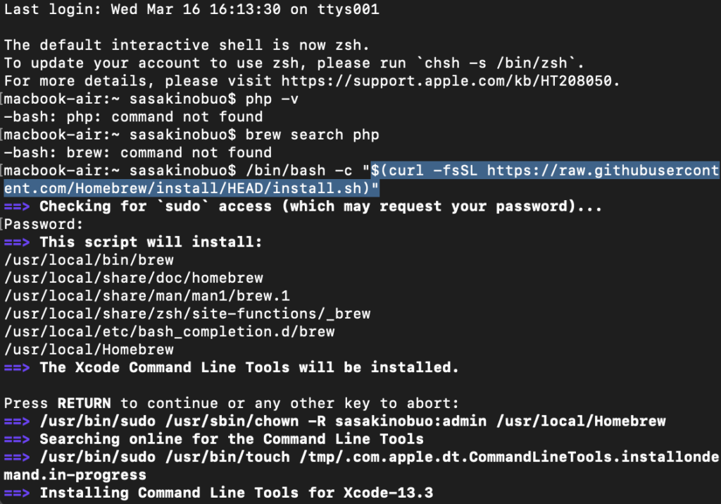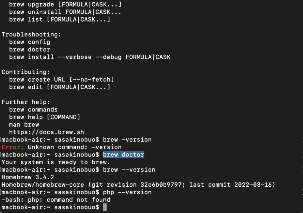 Macには出荷時にPHPが既にインストールされている。との情報があったが、ぼくのマックにはインストールされていなかったので、まずは、Homebrewをインストールした後で、Homebrew上でPHPをインストールしなければならなかった。