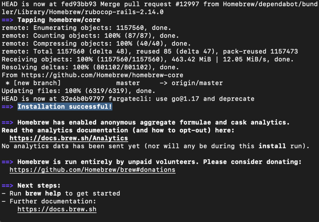 brew doctor と入力し、Your system is ready to brew. と返ってくればインストール完了してる。